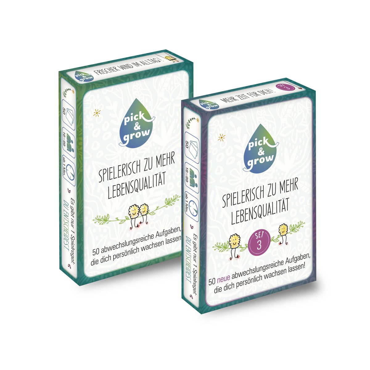 Mit unserem Kartenset lernst du, kleine und große Herausforderungen zu meistern und deine Gedanken besser zu steuern. Das hebt deine Stimmung und stärkt deine Widerstandskraft. Diese zwei Kartensets von Pick & Grow bringen mit jeweils 50 Karten viel Abwechslung, Inspiration und Spaß in dein persönliches Wachstum!