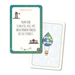 Im Set 3 findest du 50 neue Impulse für jeden Tag, diesmal mit einem kleinen Fokus auf Ruhe, Entspannung und Entschleunigung. Alle Karten von Pick & Grow sind frei kombinierbar – egal, welche Sets du hast. Such dir Karten aus, die dir oder Freunden jetzt gerade helfen oder die dich ansprechen. Jede Aufgabe bietet dir die Chance, deine Welt ein Stück bunter zu machen. Verwende sie, um kleine und große Herausforderungen zu meistern oder neue Gewohnheiten einzuüben.